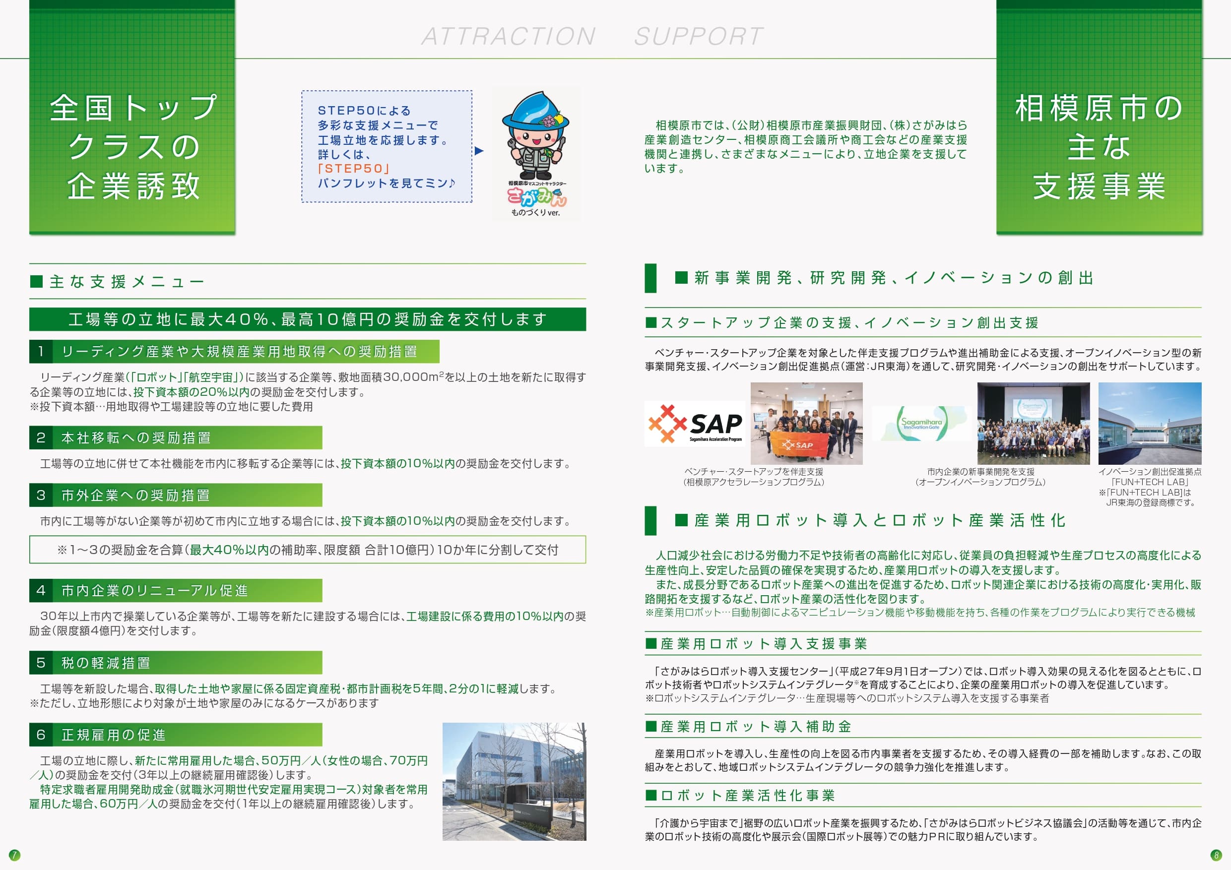 - リニア中央新幹線神奈川県駅(仮称)が設置される相模原市は、高度な技術を有した”ものづくり企業” が集積していることが強みです。また、成長が見込まれる「ロボット」「航空宇宙」産業の振興にも積極的に取り組んでいます。当ブースでは優れた技術力を有する相模原市企業12社が出展いたします。各社のPRページもぜひご覧ください。 <出展企業(50音順)>アールエスプロ株式会社/株式会社アルファ技研/株式会社カトー精工/株式会社相模ゲージ製作所/ナウ精工株式会社/株式会社パパス/フィーブリケミカル株式会社/扶桑精工株式会社/ペンニットー株式会社/株式会社宮下製作所/株式会社リガルジョイント/有限会社ワイエスデザイン