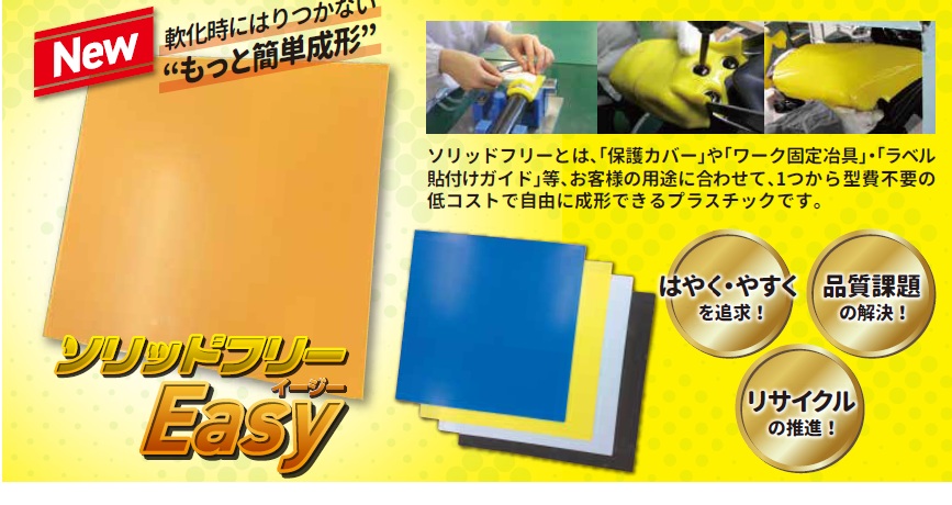 - 60℃で自由に形を変える不思議プラスチック「ソリッドフリー」に新製品「Easy」登場!初展示の同製品運用例を多数展示!リサイクル性も向上しており、社内改善のみならず、環境負荷低減にもお客立ち頂けます!!!