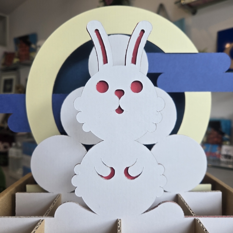 全部、段ボール。 耐久性・加工性・環境性を兼ね備えた段ボール素材の可能性を、実物を通じてご確認いただけます。 デザインした置物や什器を全て段ボールで作製しました。 見るだけでも大歓迎です。お気軽にお立ち寄り下さい。