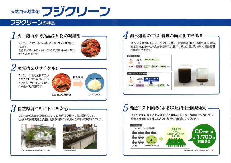- 濁水処理システムで使用される「凝集剤最適添加量自動調整装置」と「天然由来凝集剤フジクリーン」を紹介します。「凝集剤最適添加量自動調整装置」は国土交通省の新技術情報提供システム(NETIS)に登録されており、凝集剤添加の自動化や遠隔地からの添加量調整を可能とすることで、省力化や施工性向上が期待できる装置です。「天然由来凝集剤フジクリーン」は廃棄物であるカニやエビ殻から得られるキトサンを使用し、天然由来でかつ食品添加物に認められている自然環境にもヒトにも優しく濁水処理が行える凝集剤です。今回紹介した製品は当社の濁水処理システムはもちろん他社の濁水処理システムにも後付けで運用が可能な製品となっております。