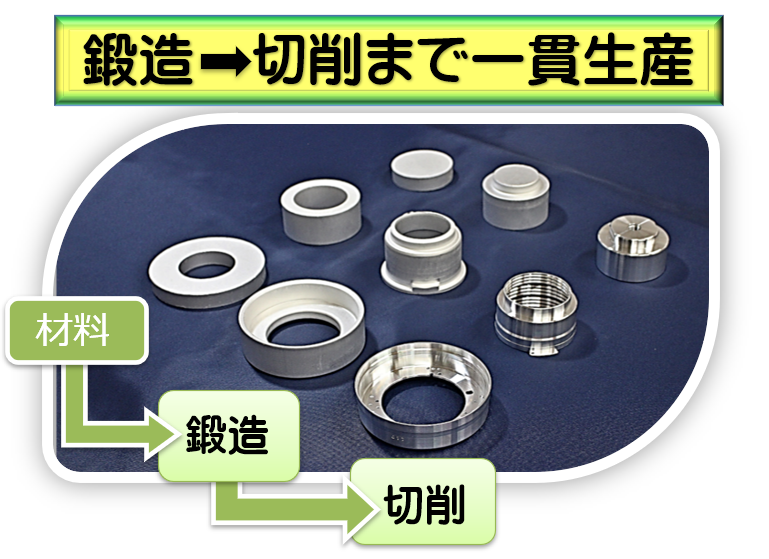 鍛造から切削までの加工サンプルの展示。鍛造加工技術が見える工程サンプルの展示。光学部品、車載部品など各種展示しています。