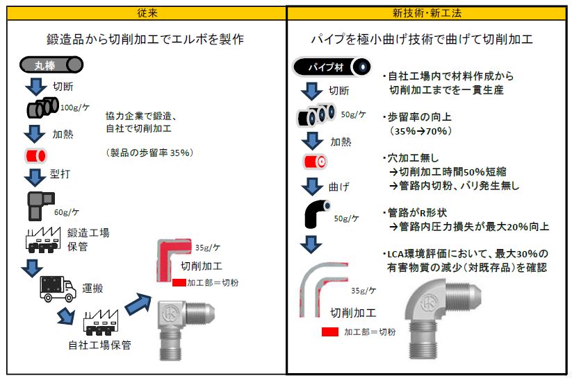 - エルボ、アダプタ等の油圧配管継手を製作するメーカーです。 肉厚パイプを極小曲げ特許技術で製作した「まるみ君®」は、穴あけ不要の配管継手です。