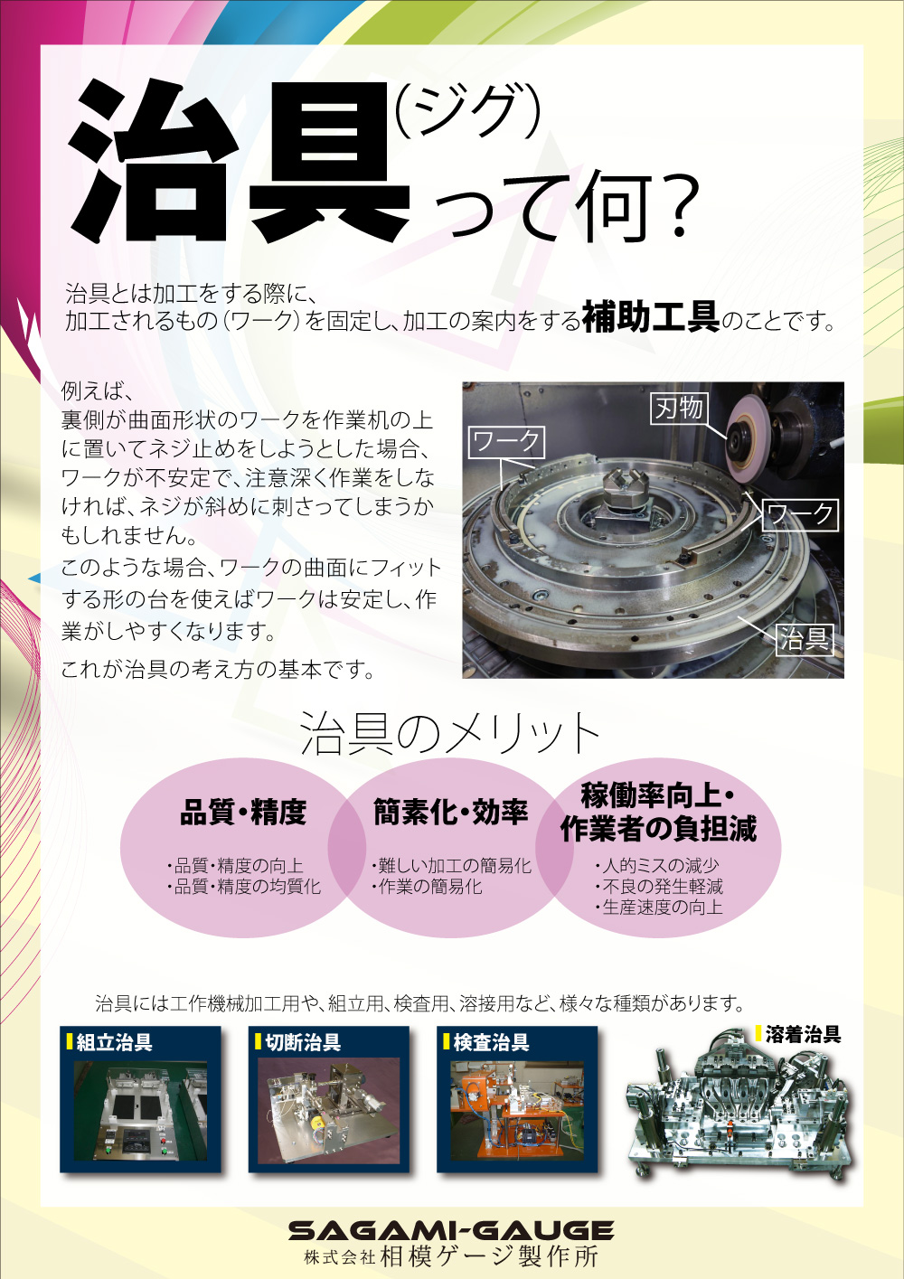 - 安定した精度をもった製品を、安全に製造できる治具の提案。 製品を生産する上で、ヒューマンエラーを最小限にする治具の提案。 製造業のみならず使用される治具を、お客様の声を形にし提案・製作できる企業です。