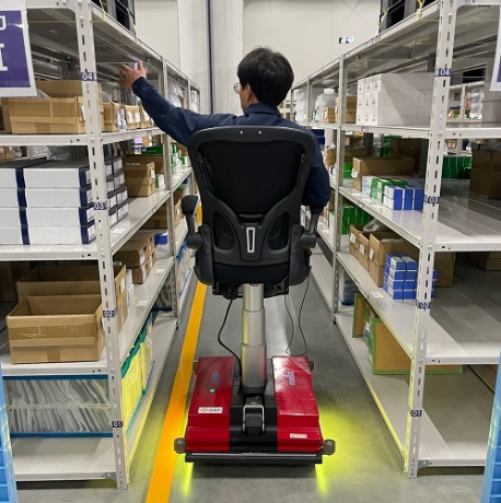 - movBot® Officeは横行、斜行、旋回とまるで「魔法の絨毯」に乗っているかのように全方向に全方向への走行が可能なモビリティです。 座面の昇降機能があり、高いところが見れ、手に取ることができます。 次世代の「スマートモビリティ」として、自律走行機能を搭載したmovBot® Officeは、オフィスや倉庫、商業施設など多様な環境での利用が期待されています。
