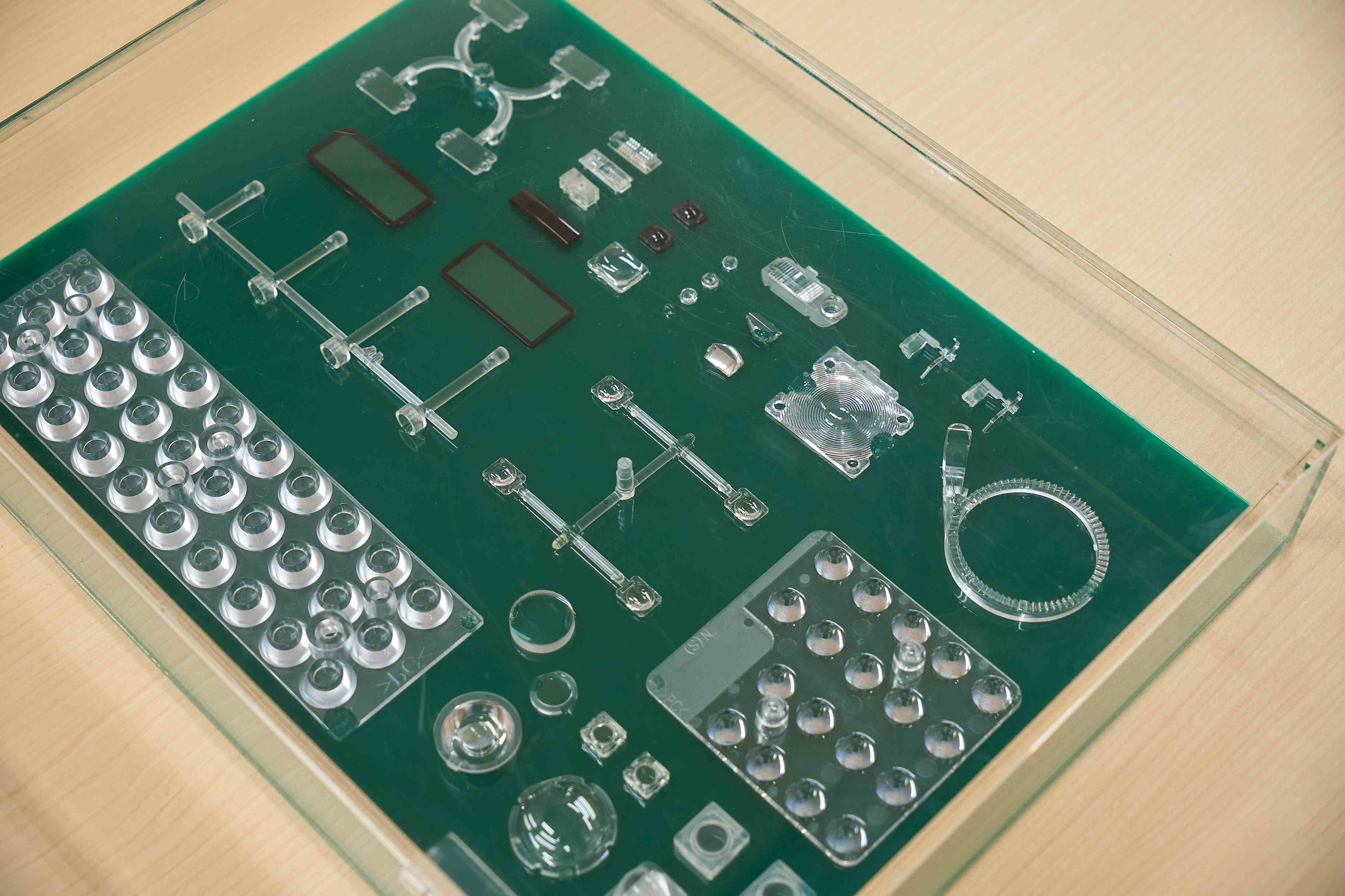 クリーンレベル ISO6-8クラスを維持し、異物を嫌う透明製品の成形を強みとしています。 難易度の高いスーパーエンプラなどのノウハウや、着色材料で外観・意匠部品の品質を維持しております。是非、現物製品をご覧ください!