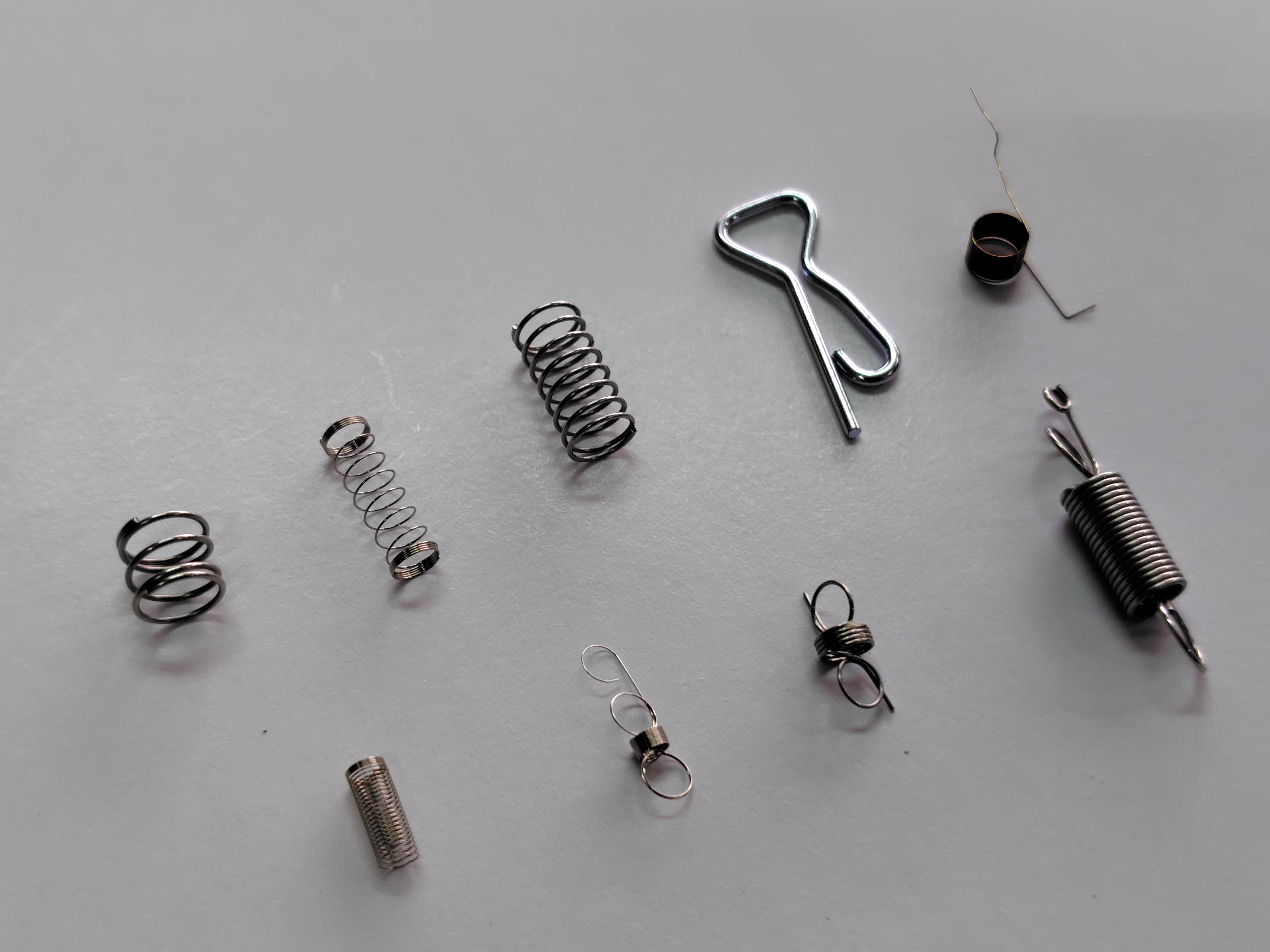 - 「コイリングマシン」や「フォーミングマシン」にて製造している工程動画を流します。 実物の「押しバネ」「引っ張りバネ」「捻じりバネ」「フォーミング加工品」など様々なバネを展示させて頂きます。