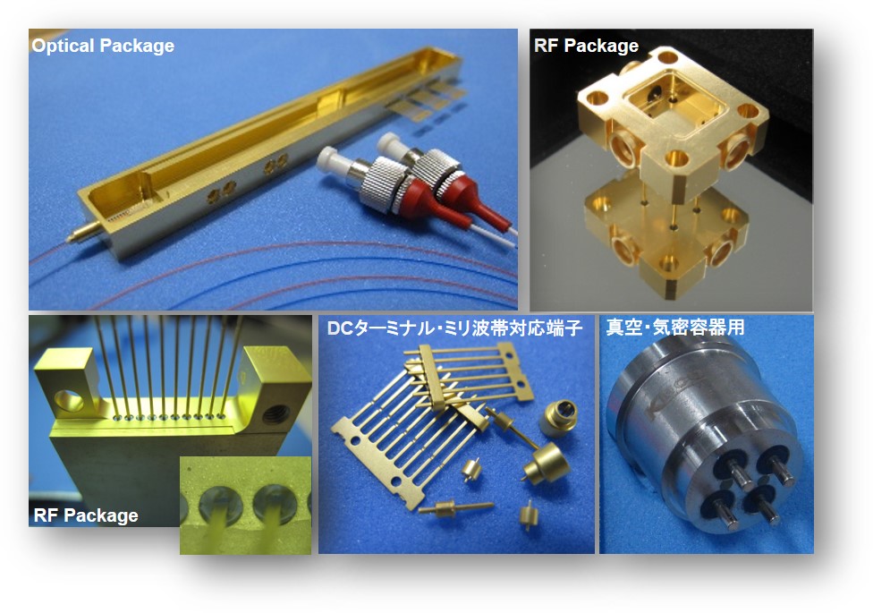 当社の精密加工技術を駆使して高周波対応部品を製作しています。 設計、機械加工、めっき、各種接合、組立を社内一貫生産しております。