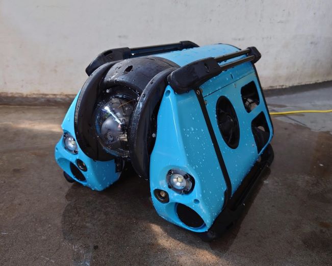 - HD水中カメラを搭載し、ダムやインフラ設備の水中調査を行う水中ドローンを展示します。水中映像をリアルタイムに表示し、各センサー情報と共に手元の操作PCに記録します。5基の独自スラスタ配置により、高い機動性を確保。また、ジャイロセンサを搭載し、自立姿勢制御を行うため、どなたにも扱いやすい自在な操作性を併せ持ちます。機体重量12kgのコンパクトサイズ。大容量バッテリーを2基搭載し、最長6時間の長稼働を実現しました。