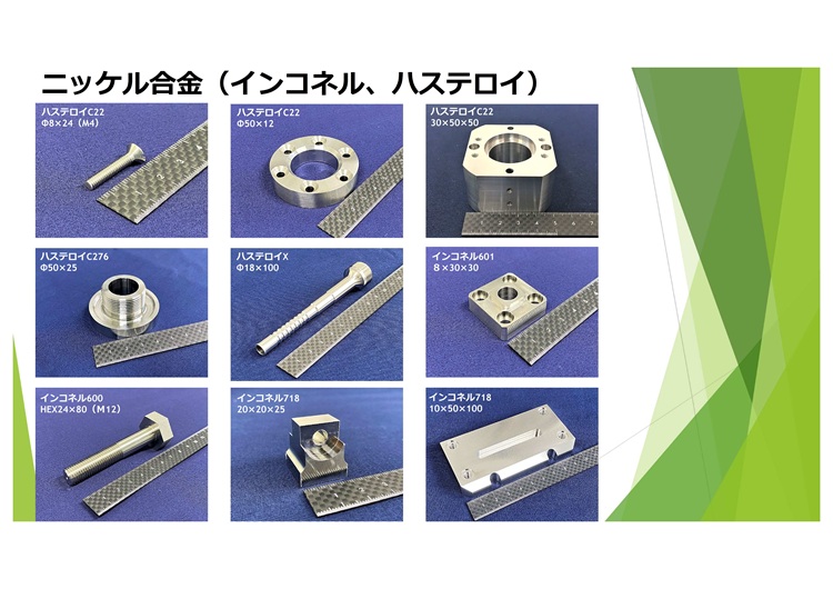 チタンをはじめニッケル合金・コバール・ジルコニウム等の切削加工品を展示しています。 是非お立ち寄りください。