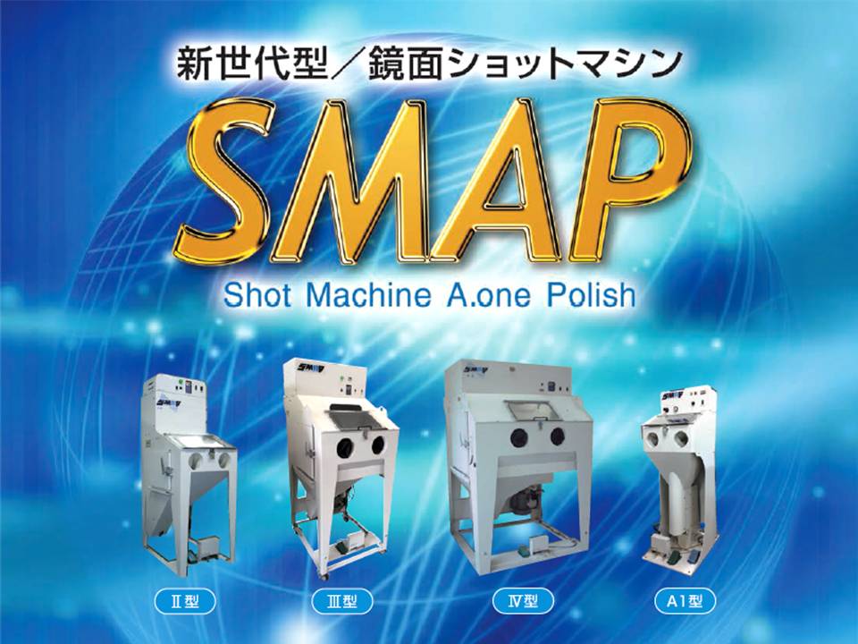 - 鏡面ショットマシンSMAPは研磨・磨きでお困りのお客様を手助けする為に生まれた、画期的な研磨装置です。 見た目はサンドブラストですが、誰でも簡単に金属を鏡面に出来ます。特徴として、 ①ワークを手で持って加工する為、治具が不要。技術もいりません。 ②エアーを使わず研磨メディアを投射する為、加工時間が早い。 ③メディアはゴム質なので素地を痛めません。 ④乾式研磨なので、後処理が不要。管理も非常に楽です。 ⑤研磨メディアのラインナップは30種以上。用途に合わせてお選び頂けます。 ⑥手では磨き辛い複雑形状面の加工が得意です。 ⑦微細なバリも簡単に除去出来ます。 ⑧研磨メディアの切れ味を簡単に再生させる事が出来ます。