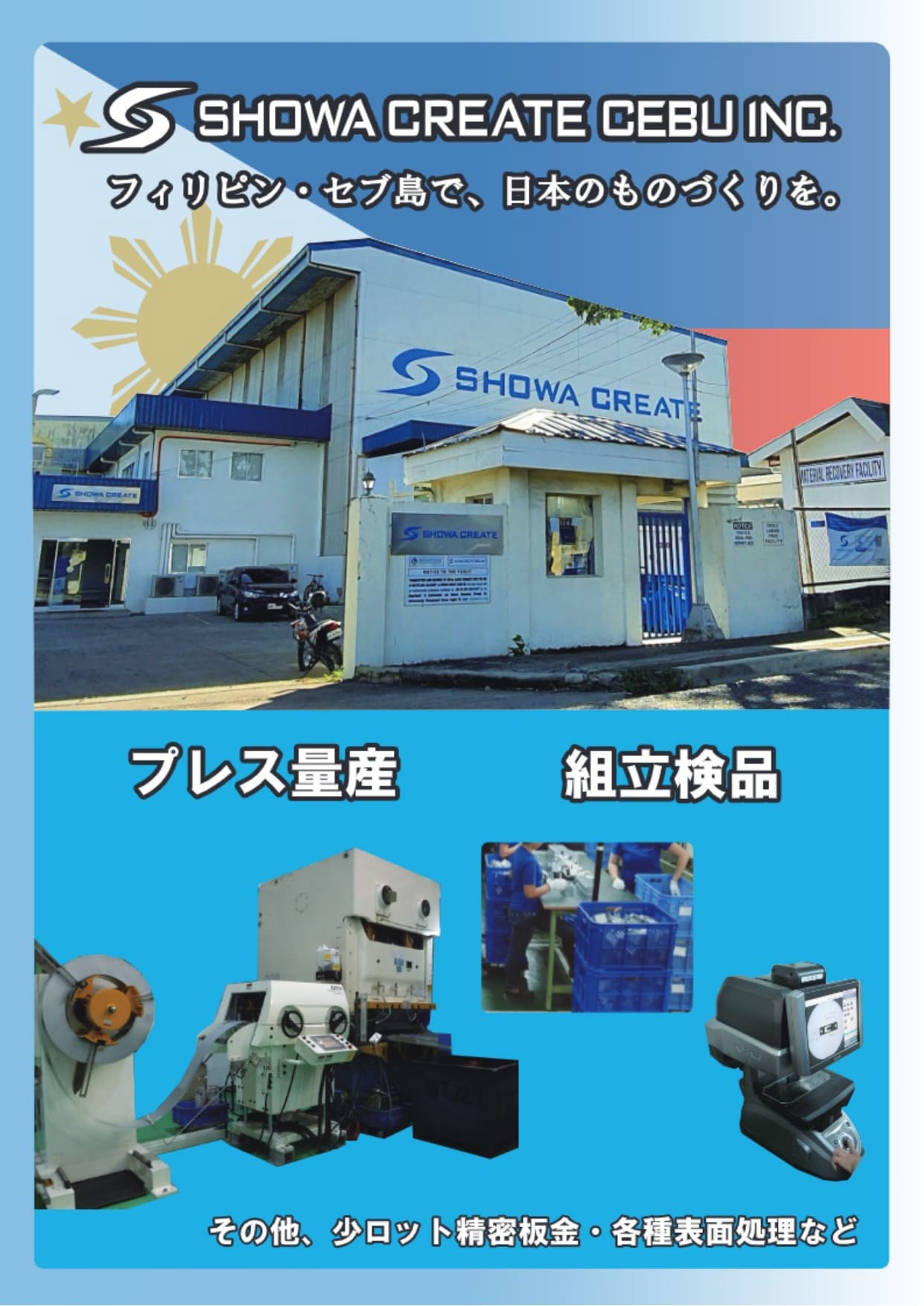 - 主に板バネを中心としたプレス加工品を製造しており、自動車部品・建築金物部品・照明器具部品・医療部品・航空関連・工具関連・精密部品など扱っております。海外生産拠点がフィリピンのセブにあり対応をしております。