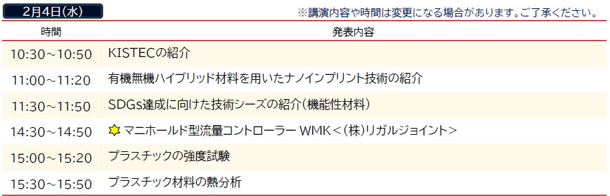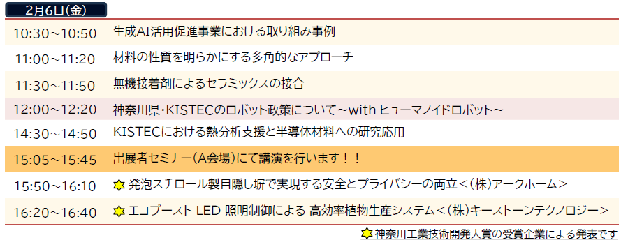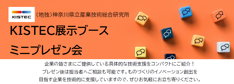 - 【ミニプレゼン会実施】企業の皆さまにご提供している具体的な技術支援をコンパクトにご紹介!プレゼン後は担当者へご相談ご相談も可能です。ものづくりのイノベーション創出を目指す企業を技術的に支援していますので、ぜひお気軽にお立ち寄りください。 ※神奈川県立産業技術総合研究所 略称:KISTEC(キステック)は、神奈川県が設立した公設試験研究機関です。 ※ミニプレゼンの他、事業のご紹介資料を配布いたします。