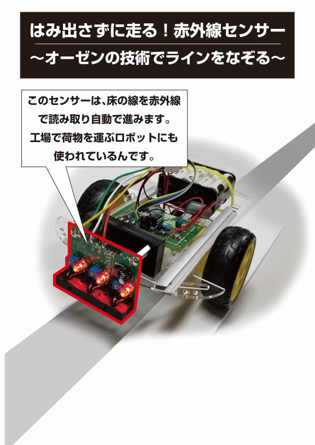 - 光って、音が鳴って、動いて、さわれる。センサーで検知し音で警告する安全を作る仕組みをミニチュアで体験できる。接触事故防止超音波センサーの付いたショベルカー、赤外線センサーでテープをなぞる搬送ロボット、ドア開閉音と運転補助音声が聞ける電車の模型がお待ちしています。