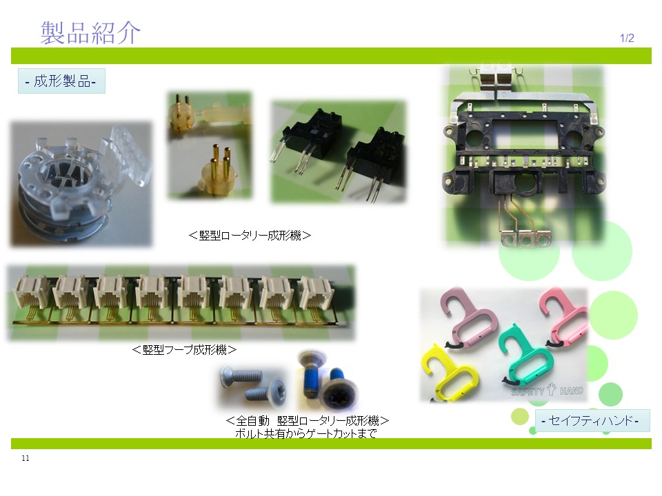 - 創業44年を迎えた当社は、精密小物プレス加工、インサート成形を中心に、開発(試作)~量産までの一貫体制を構築しております。設計から金型製造を行い、自動車部品、電子部品、スマートフォンなどの幅広い部品の生産・納入の実績を有しております。エンドユーザーには自動車部品メーカーもあり、納期・品質面での信頼を勝ち取って今日まで至っております。また、2017年にタイ(サンムトプラカン)へタイ工場を設立し、オートバイメーカーなどへの実績も有しております。
