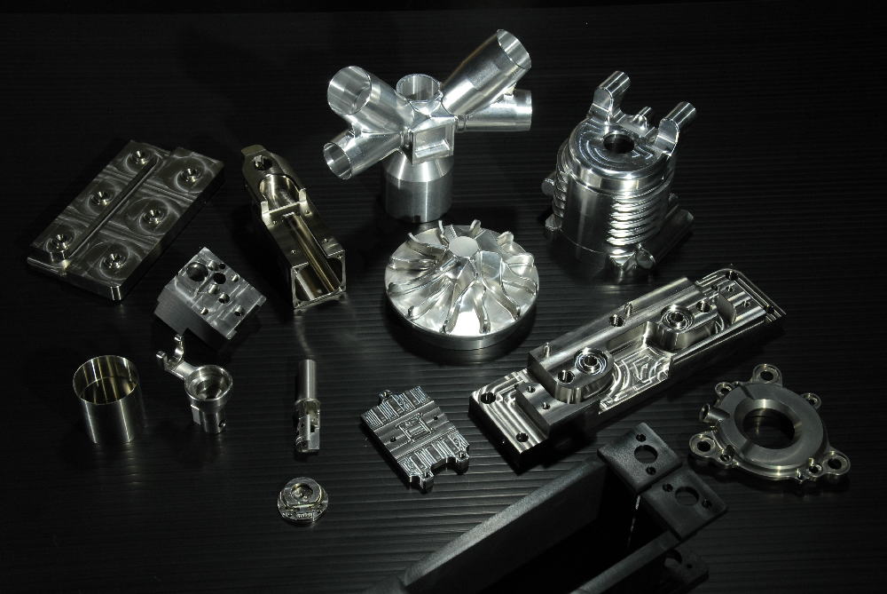 5軸マシニングセンタ、複合旋盤で加工した、医療分野、航空宇宙分野、ケミカルポンプ、半導体関連の部品精密部品を展示。材質はチタン、SUS316、ハステロイ、アルミ等。