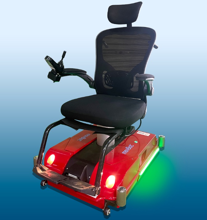 - movBot® Officeは横行、斜行、旋回とまるで「魔法の絨毯」に乗っているかのように全方向に全方向への走行が可能なモビリティです。 座面の昇降機能があり、高いところが見れ、手に取ることができます。 次世代の「スマートモビリティ」として、自律走行機能を搭載したmovBot® Officeは、オフィスや倉庫、商業施設など多様な環境での利用が期待されています。