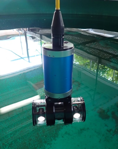 - HD水中カメラを搭載し、ダムやインフラ設備の水中調査を行う水中ドローンを展示します。水中映像をリアルタイムに表示し、各センサー情報と共に手元の操作PCに記録します。5基の独自スラスタ配置により、高い機動性を確保。また、ジャイロセンサを搭載し、自立姿勢制御を行うため、どなたにも扱いやすい自在な操作性を併せ持ちます。機体重量12kgのコンパクトサイズ。大容量バッテリーを2基搭載し、最長6時間の長稼働を実現しました。