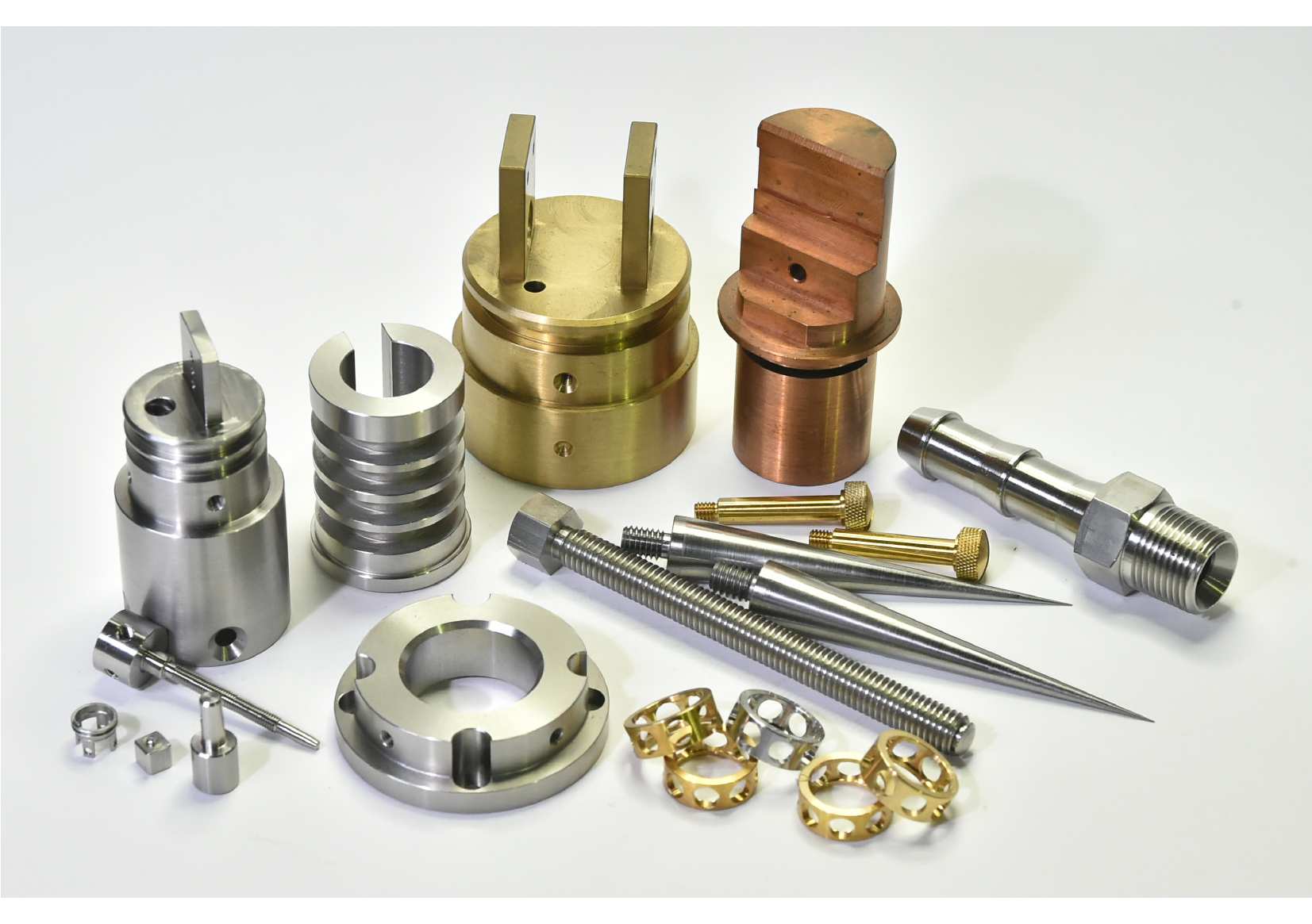 - 旋盤複合加工品(旋盤+フライスなど)のサンプルを40点以上展示しております。 会場では旋盤複合機内の加工動画をご覧いただきながら、ご説明させて頂きます。 是非、お立ち寄りください。