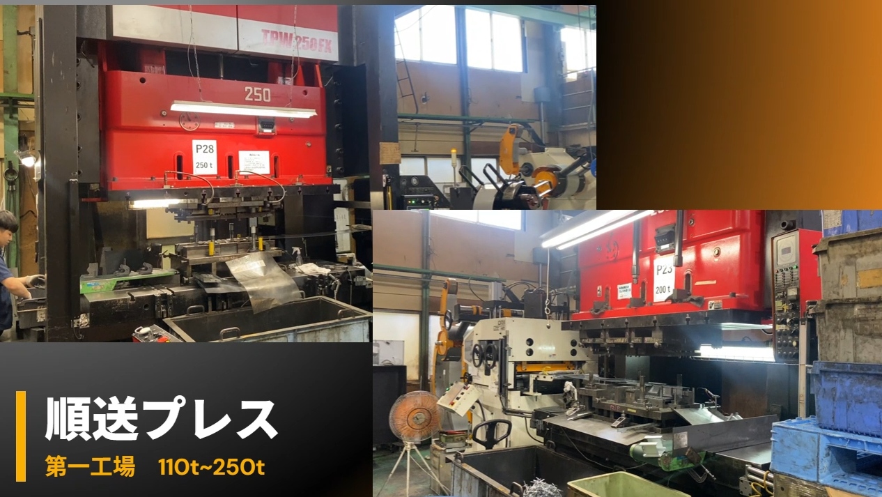 30~300tのプレス機を使い分けています。